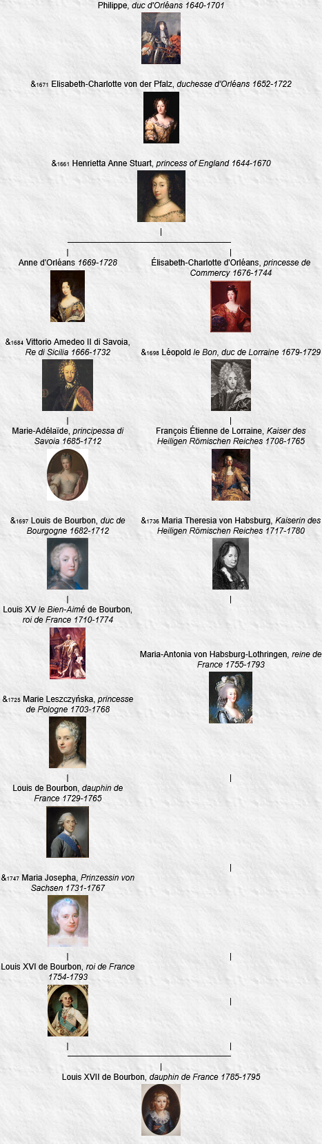 Louis XVII comptera dans son ascendance les deux épouses de Monsieur.