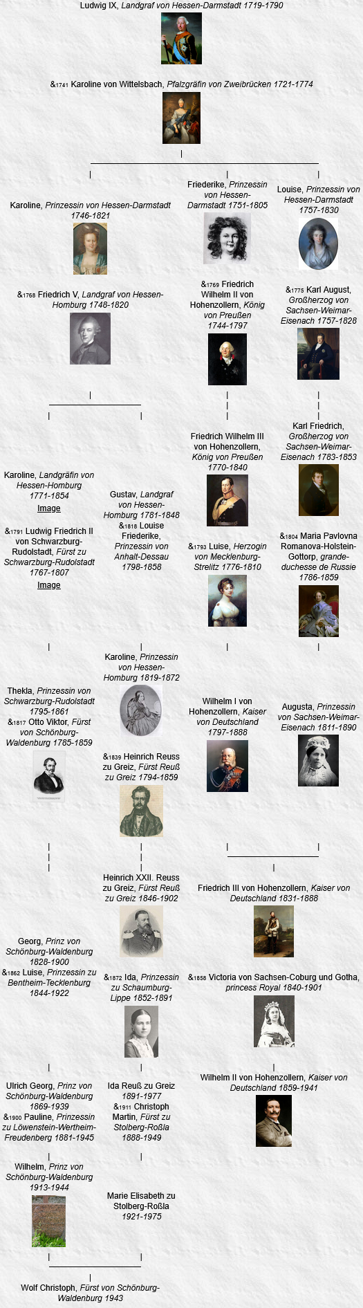28 Heinrich XX., Fürst Reuß zu Greiz (4e), né le 29 juin 1794, Offenbach (Deutschland), décédé le 8 novembre 1859, Greiz (Deutschland) (à l’âge de 65 ans).