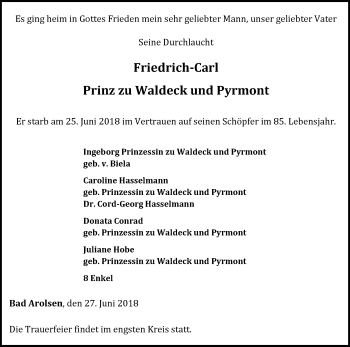 Friedrich Carl, Prinz zu Waldeck und Pyrmont 1933-2018
