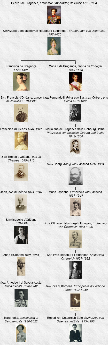 27 Francisca de Bragança, née le 2 août 1824, Rio de Janeiro (Brésil), décédée le 27 mars 1898, Paris (Paris), inhumée, chapelle royale Saint Louis, Dreux (Eure-et-Loir) (à l’âge de 73 ans).
