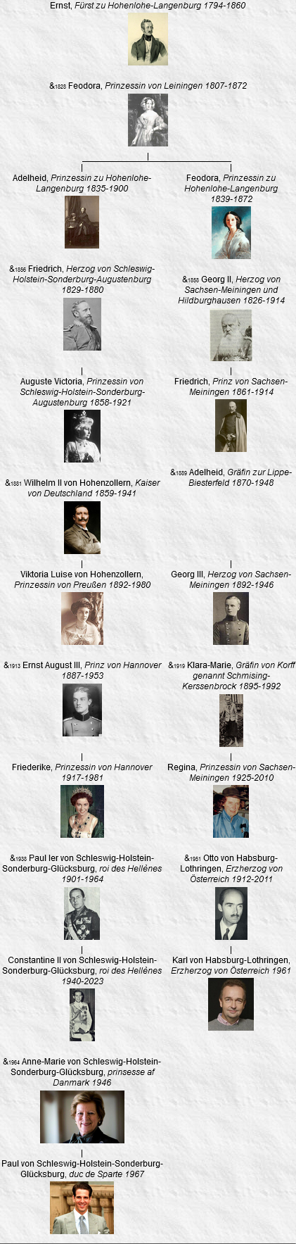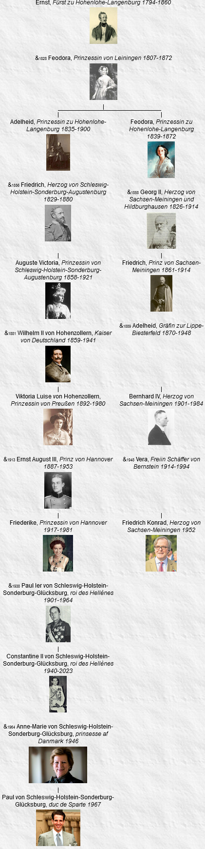 47 Adelheid, Prinzessin zu Hohenlohe-Langenburg, née le 20 juillet 1835, Langenburg, décédée le 25 janvier 1900, Dresden (à l’âge de 64 ans).
