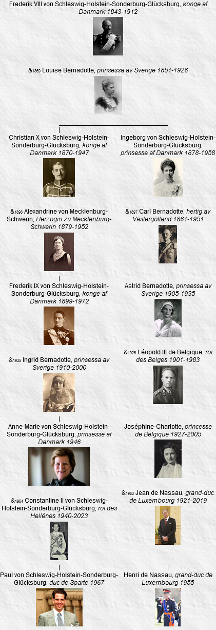 - Frederik VIII, né le 3 juin 1843, København (Danmark), décédé le 14 mai 1912, Hamburg (Deutschland) (à l’âge de 68 ans). Voir 24.