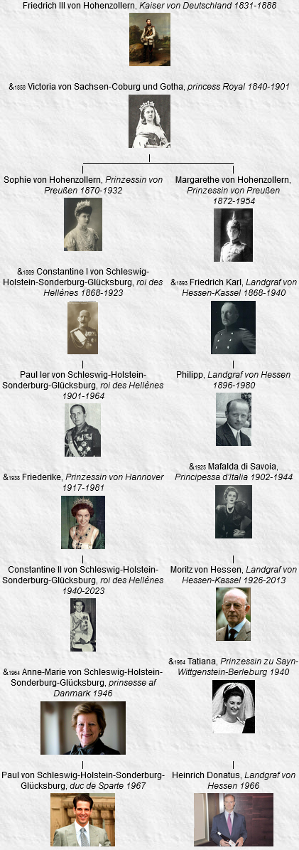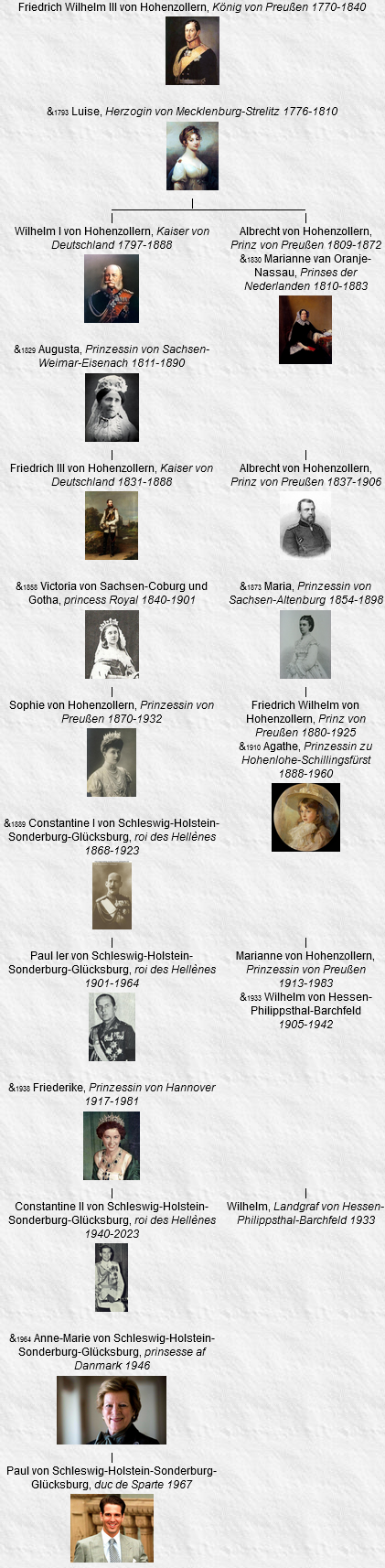 - Friedrich III, né le 15 octobre 1831, Potsdam, Brandenburg (Allemagne), décédé le 15 juin 1888, Potsdam, Brandenburg (Allemagne) (à l’âge de 56 ans). Voir 18.