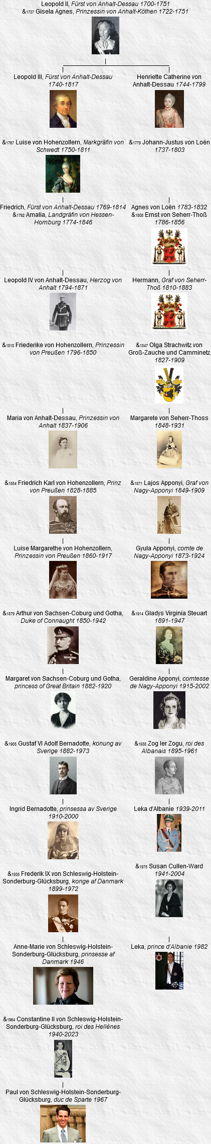 - Thyra, née le 29 septembre 1853, Copenhague (Danemark), décédée le 26 février 1933, Gmunden (Autriche) (à l’âge de 79 ans). Voir 21.