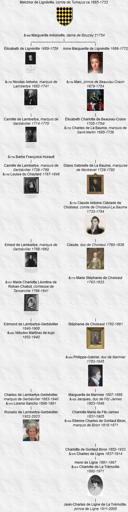 16 Camille de Lambertye, marquis de Gerbéviller, né le 27 novembre 1739, Saint Roch, Nancy (Meurthe-et-Moselle), décédé en 1789 (à l’âge de 50 ans), chambellan du Roi de Pologne.