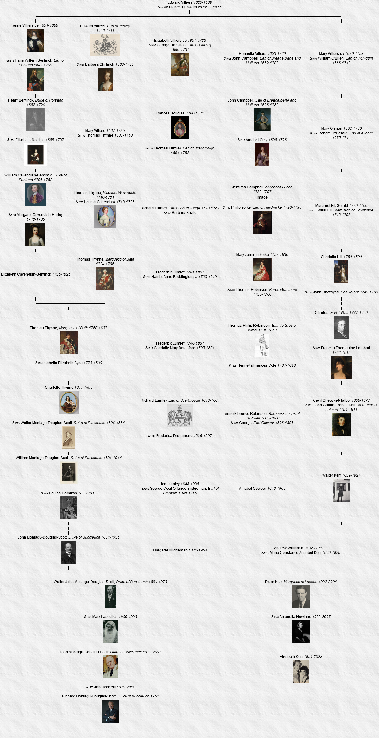 16 John William Robert Kerr, Marquess of Lothian (7e), né le 1er février 1794, Newbattle Abbey, Newbattle, Midlothian, Scotland (United Kingdom), décédé le 14 novembre 1841, Blickling Hall, Blickling, Norfolk, England (United Kingdom) (à l’âge de 47 ans).