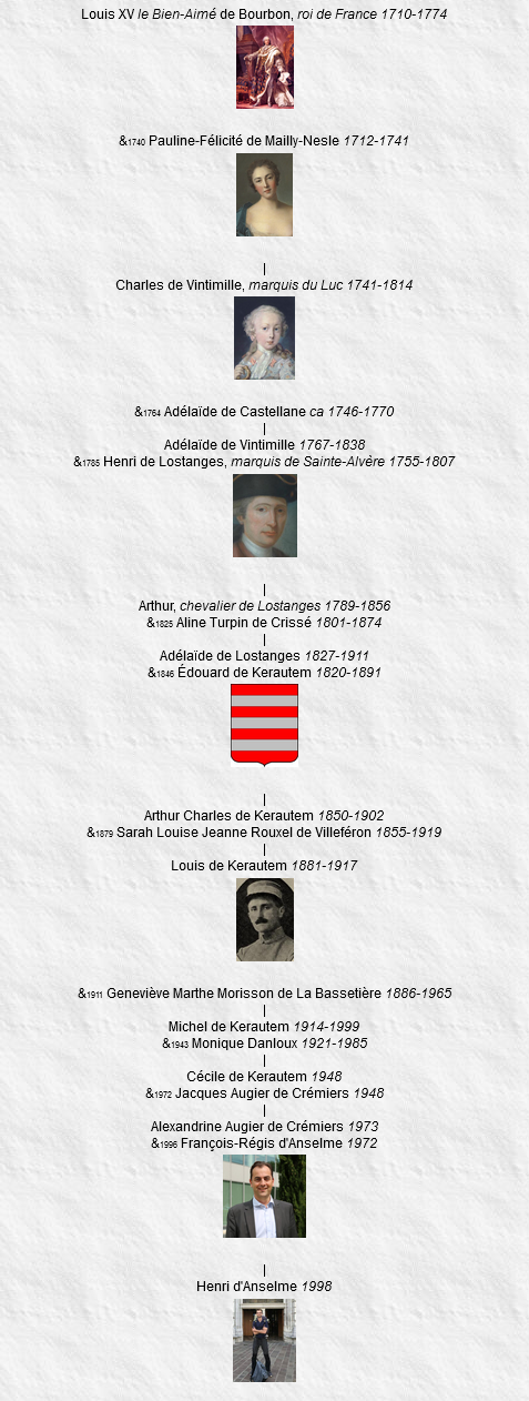 14 Michel de Kerautem, né le 15 décembre 1914, Saint-Julien-des-Landes (Vendée), décédé le 17 juillet 1999, Saint-Julien-des-Landes (Vendée) (à l’âge de 84 ans).