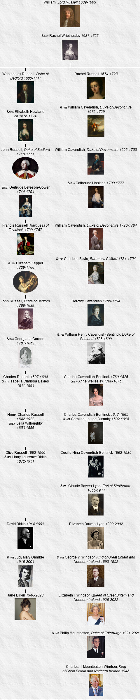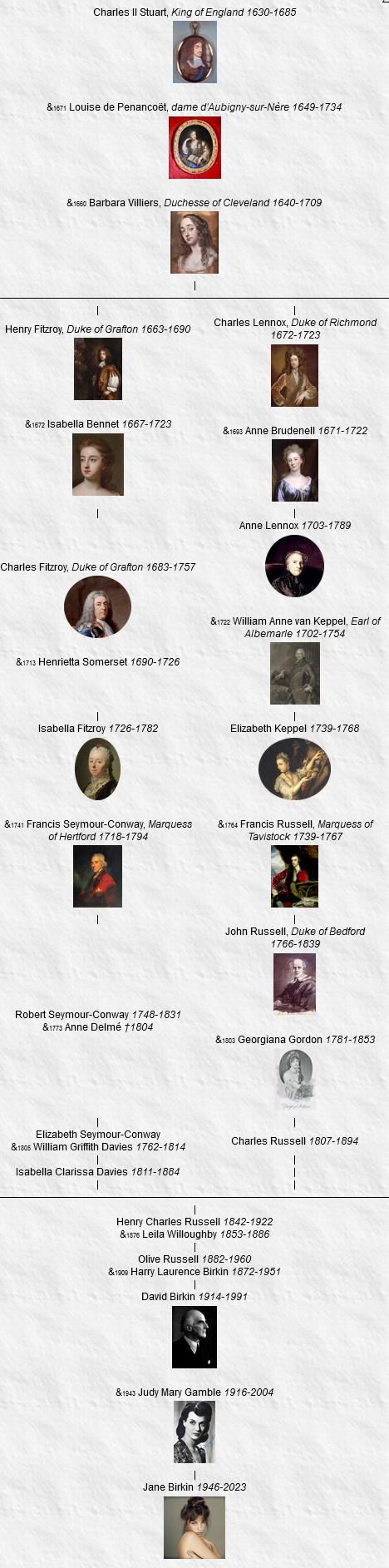 Jane Birkin est une descendante de Charles II, roi d’Angleterre, d’Écosse et d’Irlande.
