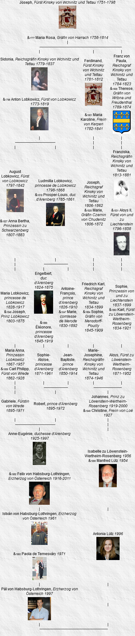 52 Joseph, Reichsgraf Kinsky von Wchinitz und Tettau, né le 25 octobre 1806, Schotten, Wien (Österreich), décédé le 17 juillet 1862, Adlerkosteletz (à l’âge de 55 ans).