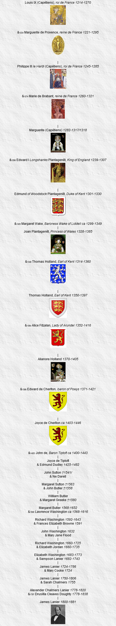 On remarque que l’ancêtre James Lanier https://en.wikipedia.org/wiki/James_Lanier mentionné dans le texte de wikipédia ne figure pas dans le tableau d’ascendance !