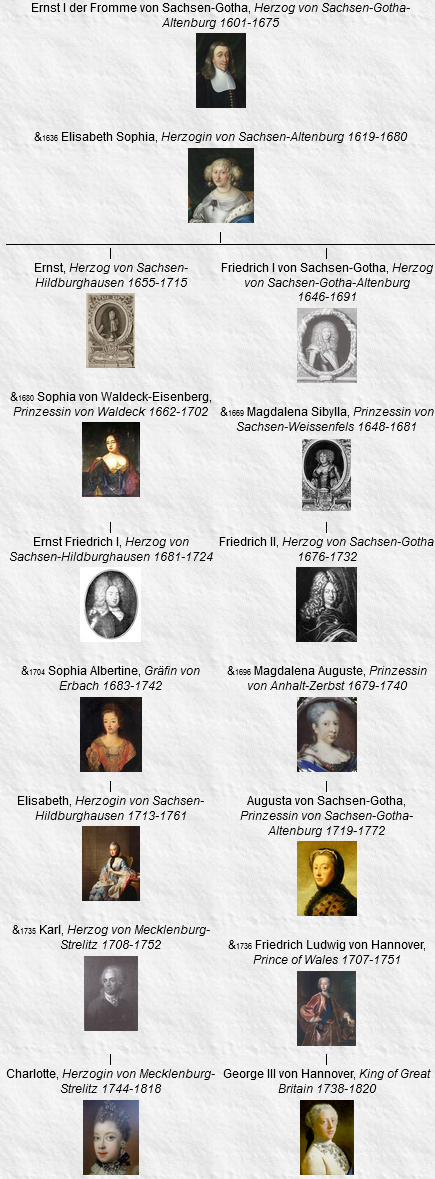 24 Ernst I, Herzog von Sachsen-Gotha-Altenburg, né le 25 décembre 1601, Altenburg, Thüringen (Deutschland), décédé le 26 mars 1675, Gotha, Thüringen (Deutschland) (à l’âge de 73 ans).