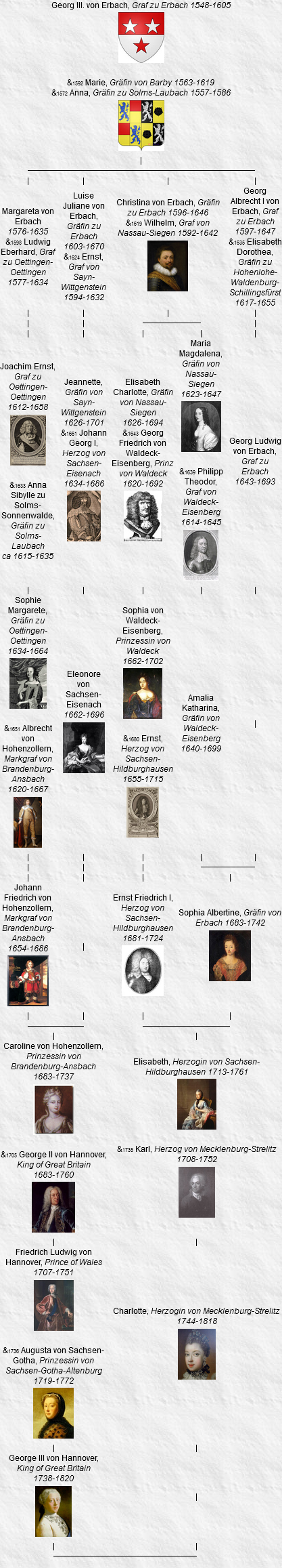 14 Georg Ludwig, Graf zu Erbach, né le 3 mai 1643, Furstenau, décédé le 30 avril 1693, Arolsen (à l’âge de 49 ans).