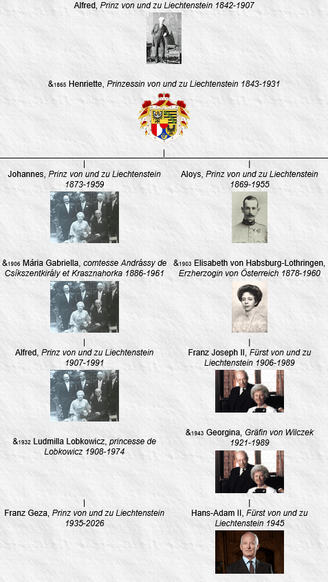 Franz Géza Johannes Georg Thaddäus Konrad Maria , Prinz von und zu Liechtenstein, né le 19 janvier 1935, Graz, décédé le 15 janvier 2026, Deutschlandsberg (à l’âge de 90 ans).