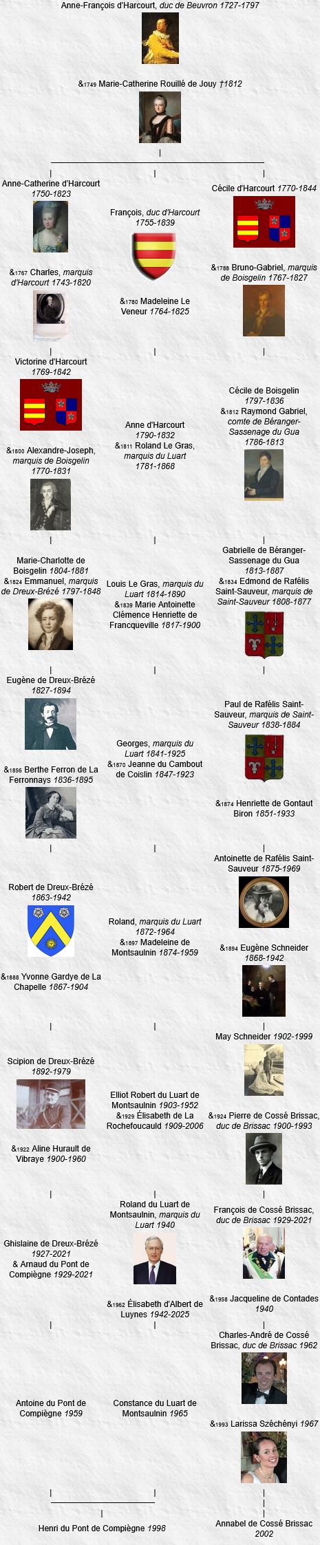 14 Philippe d’Albert de Luynes Dunois, duc de Luynes (11e), duc de Chevreuse (14e), né le 12 août 1905, château de Dampierre, Dampierre-en-Yvelines (Yvelines), décédé le 13 juillet 1993, Luynes (Indre-et-Loire) (à l’âge de 87 ans).