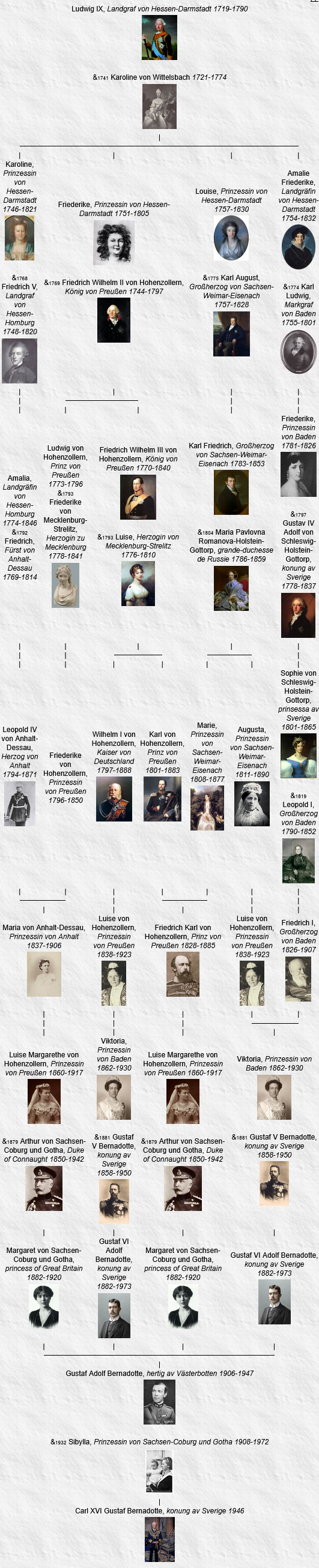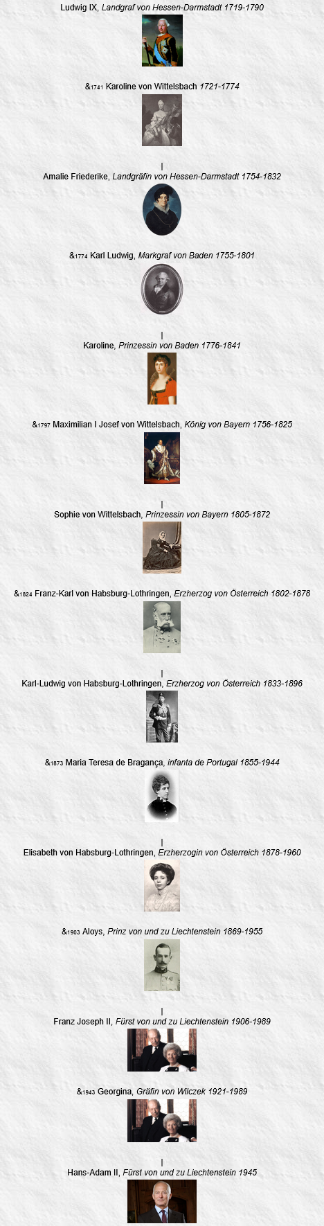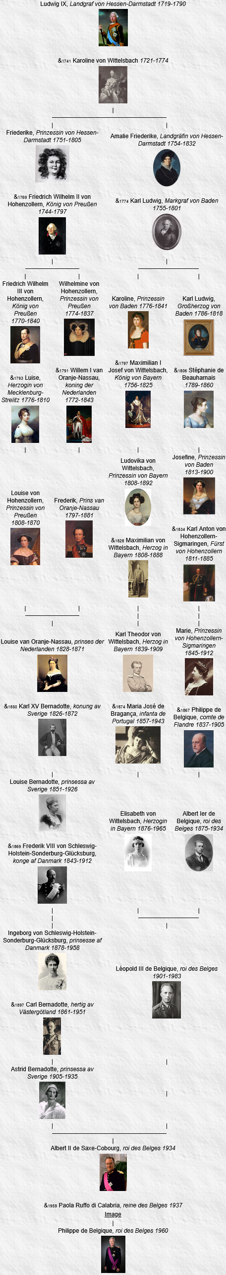 Louis IX de Hesse-Darmstadt et sa femme Caroline Henriette de Palatinat-Deux-Ponts-Birkenfeld sont devenus les ancêtres communs les plus récents de tous les monarques européens actuels le 8 septembre 2022 après le décès de la reine Élisabeth II, qui elle n’en descend pas, et l’accession au trône de son fils, Charles III, un descendant par son père.