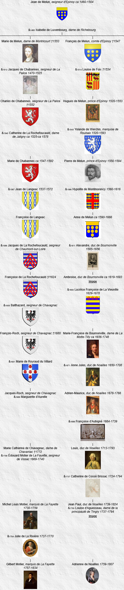 2 Michel Louis Motier, marquis de La Fayette (3e), né en 1730, tué le 1er août 1759, bataille de Minden (Allemagne) (à l’âge de 29 ans).