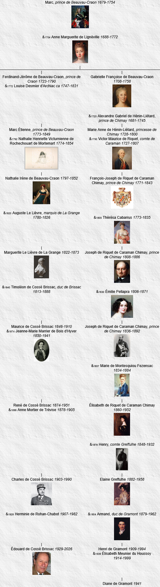 2 Charles de Cossé Brissac, né le 5 juin 1903, Fontainebleau (Seine-et-Marne), décédé le 9 avril 1990, Paris (à l’âge de 86 ans), général de brigade.
