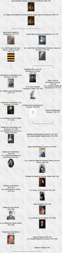 16 Timoléon de Cossé Brissac, duc de Brissac (10e, 7 avril 1848 – 11 septembre 1888), né le 13 mai 1813, Dijon (Côte-d’Or), décédé le 11 septembre 1888, Paris (à l’âge de 75 ans), maire de Brissac (49).