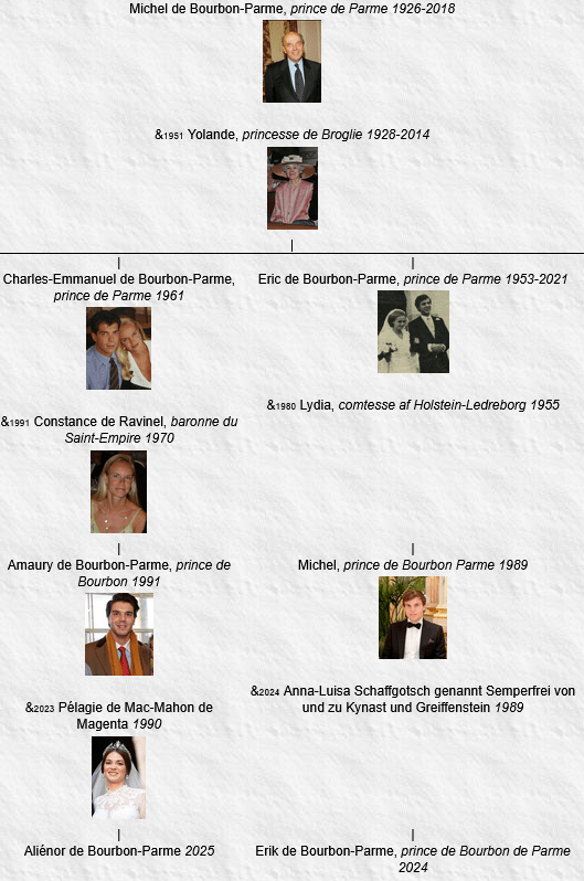 Peu de temps avant la naissance de leur fils, le prince Michel de Bourbon-Parme et la comtesse Anna-Luisa Schaffgotsch genannt Semperfrei von und zu Kynast und Greiffenstein se sont mariés civilement le 20 avril 2024, Lejre (Denmark).