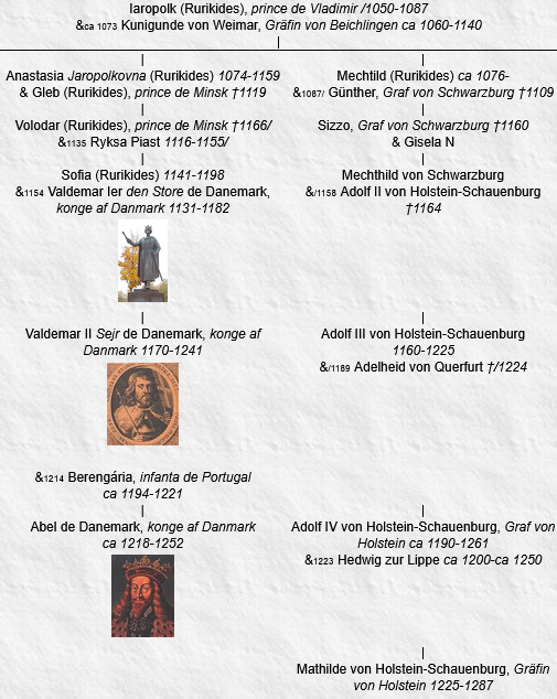 4 Valdemar Ier den Store, konge af Danmark (1157-1182), né le 14 janvier 1131, Slesvig, décédé le 12 mai 1182, Vordingborg, inhumé, Ringsted (à l’âge de 51 ans).