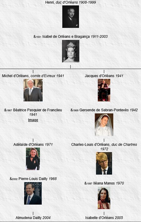 28Ferdinand-Philippe, duc de Chartres (1810-1830), duc d’Orléans (1830), né le 3 septembre 1810, Palermo, Sicilia (Italia), baptisé le 4 septembre 1810, chapelle royale, Palermo, Sicilia (Italia), décédé le 13 juillet 1842, Sablonville, Neuilly-sur-Seine (Hauts-de-Seine), inhumé, chapelle royale Saint Louis, Dreux (Eure-et-Loir) (à l’âge de 31 ans). .