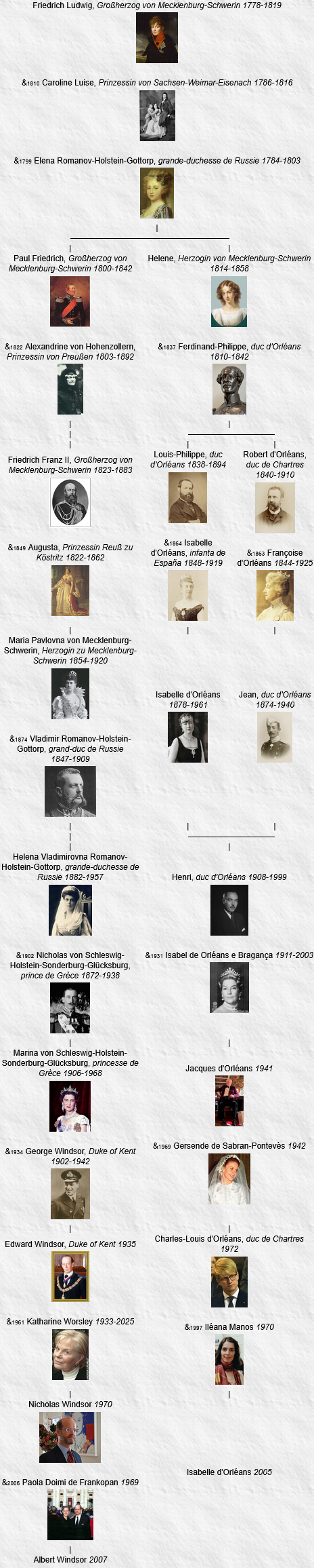 29Helene, Herzogin von Mecklenburg-Schwerin, née le 24 janvier 1814, Ludwigslust, décédée le 18 mai 1858, Richmond, inhumée, chapelle royale Saint Louis, Dreux (Eure-et-Loir) (à l’âge de 44 ans).
