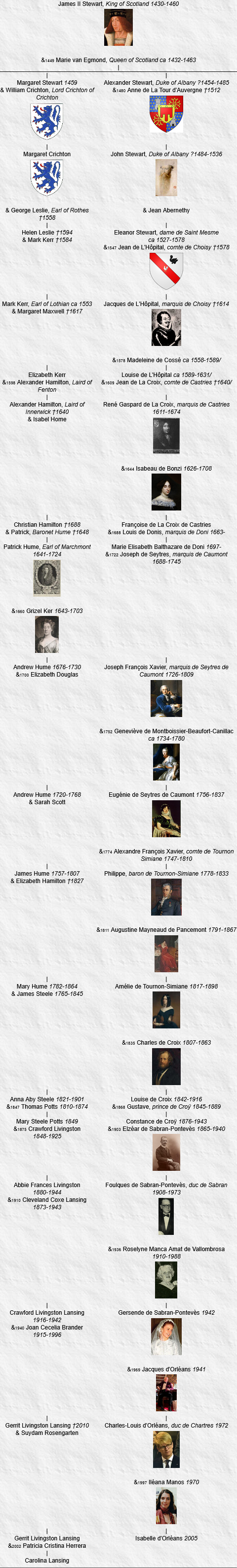 Hans, konge af Danmark1455-1513 &1478 Christina von Sachsen 1461-1521 1. Christian II, konge af Danmark1481-1559 &1515 Isabella, Erzherzogin von Österreich1501-1526 1.1. Hans, prins af Danmark1518-1532 1.2. Filip Ferdinand von Oldenburg 1519-1519 1.3. Maximilian von Oldenburg 1519-1519 1.4. Dorothea, prinsesse af Danmark1520-1580 &1535 Friedrich II, Kurfürst von der Pfalz1482-1556 1.5. Christine, prinsesse af Danmark1521-1590 &1534 Francesco II Sforza, duca di Milano1495-1535 &1541 François, duc de Lorraine1517-1545 1.5.1. Charles III, duc de Lorraine1543-1608 &1559 Claude d’Angoulême 1547-1575 1.5.1.1. Henri II, duc de Lorraine1563-1624 1.5.1.2. Christine, princesse de Lorraine1565-1637 1.5.1.3. Charles de Lorraine 1567-1607 1.5.1.4. Antoinette, princesse de Lorraine1568-1610 1.5.1.5. Anne, princesse de Lorraine1569-1576 1.5.1.6. François II, duc de Lorraine1572-1632 1.5.1.7. Catherine de Lorraine 1573-1648 1.5.1.8. Élisabeth, princesse de Lorraine1574-1636 1.5.1.9. Claude, princesse de Lorraine1574-1576 1.5.2. Renée de Lorraine 1544-1602 &1568 Wilhelm V, Herzog von Bayern1548-1626 1.5.2.1. Maximilian I, Herzog von Bayern1573-1651 1.5.2.2. Maria-Anna, Prinzessin von Bayern1574-1616 1.5.2.3. Philipp von Wittelsbach 1576-1598 1.5.2.4. Ferdinand von Wittelsbach 1577-1650 1.5.2.5. Albert von Wittelsbach 1584-1666 1.5.2.6. Magdalena, Prinzessin von Bayern1587-1628 1.5.3. Dorothée, princesse de Lorraine1545-1621 &1575 Erich II, Herzog von Braunschweig1528-1584 &1597 Marc de Rye, marquis de Varambon†1598 2. Elisabeth, prinsesse af Danmark1485-1555 &1502 Joachim I Nestor, Kurfürst von Brandenburg1484-1535 2.1. Joachim II Hector, Kurfürst von Brandenburg1505-1571 &1524 Madeleine von Sachsen 1507-1534 &1535 Jadwiga Jagiellonka 1513-1573 2.1.1. Johann Georg, Kurfürst von Brandenburg1525-1598 &1545 Sophie Piast 1525-1546 &1548 Sabina von Hohenzollern 1529-1575 &1577 Elisabeth, Prinzessin von Anhalt-Zerbst1563-1607 2.1.1.1. Joachim Friedrich, Kurfürst von Brandenburg1546-1608 2.1.1.2. George Albert von Hohenzollern 1555-1557 2.1.1.3. Jean von Hohenzollern 1557-1557 2.1.1.4. Albert von Hohenzollern 1557-1557 2.1.1.5. Magdalena Sabina von Hohenzollern 1559-1559 2.1.1.6. Erdmunthe von Hohenzollern 1561-1623 2.1.1.7. Marie von Hohenzollern 1562-1562 2.1.1.8. Hedwig von Hohenzollern 1563-1563 2.1.1.9. Magdalena von Hohenzollern 1564-1564 2.1.1.10. Margaret von Hohenzollern 1565-1565 2.1.1.11. Anna Maria von Hohenzollern 1567-1618 2.1.1.12. Sophia von Hohenzollern 1568-1622 2.1.1.13. Christian, Markgraf von Bayreuth1581-1655 2.1.1.14. Magdalena, Markgräfin von Brandenburg1582-1616 2.1.1.15. Joachim Ernst, Markgraf von Ansbach1583-1625 2.1.1.16. Agnes von Hohenzollern 1584-1629 2.1.1.17. Friedrich von Hohenzollern 1588-1611 2.1.1.18. Elisabeth Sophie, Markgräfin von Brandenburg1589-1629 2.1.1.19. Dorothea Sibylle von Hohenzollern 1590-1625 2.1.1.20. Georg Albrecht von Hohenzollern 1591-1615 2.1.1.21. Sigismund von Hohenzollern 1592-1640 2.1.1.22. Johann von Hohenzollern 1597-1627 2.1.1.23. Johann Georg von Hohenzollern 1598-1637 2.1.2. Barbara von Hohenzollern 1527-1595 &1545 Jerzy II, Herzog von Brieg1523-1586 2.1.2.1. Joachim Friedrich, Herzog von Brieg1550-1602 2.1.2.2. John George Piast 1552-1592 2.1.2.3. Elisabeth Magdalena Piast 1562-1630 2.1.3. Elisabeth von Hohenzollern 1528-1529 2.1.4. Frederic von Hohenzollern 1530-1552 2.1.5. Albert von Hohenzollern 1532-1532 2.1.6. Georges von Hohenzollern 1532-1532 2.1.7. Paul von Hohenzollern 1534-1534 2.1.8. Elisabeth von Hohenzollern 1537-1595 &1559 Franz Otto, Herzog von Braunschweig-Lüneburg1530-1559 2.1.9. Sigismond von Hohenzollern 1538-1566 2.1.10. Hedwige von Hohenzollern 1540-1602 &1560 Julius, Herzog von Braunschweig-Lüneburg1528-1589 2.1.10.1. Heinrich Julius, Herzog von Braunschweig-Lüneburg1564-1613 2.1.10.2. Marie von Braunschweig-Wolfenbüttel 1566-1626 2.1.11. Sophie, Prinzessin von Brandenburg1541-1564 &1561 Wilhelm, Herr von Rosenberg1535-1592 2.1.12. Joachim von Hohenzollern 1543-1544 2.2. Anna von Hohenzollern 1507-1567 &1524 Albrecht VI, Herzog von Mecklenburg-Schwerin1486-1547 2.2.1. Johann Albert I, Herzog von Mecklenburg-Schwerin1525-1576 &1555 Anna Sophie von Hohenzollern 1527-1591 2.2.1.1. Albert von Mecklenburg-Schwerin †1561 2.2.1.2. Johann VII, Herzog von Mecklenburg-Schwerin1558-1592 2.2.1.3. Sigismund August von Mecklenburg-Schwerin 1561-1603 2.2.2. Ulrich III, Herzog von Mecklenburg1527-1603 &1556 Elisabeth, prinsesse af Danmark1524-1586 &1588 Anne von Pommern 1554-1626 2.2.2.1. Sophie, Herzogin von Mecklenburg1557-1631 2.2.3. Georg von Mecklenburg-Schwerin 1529-1587 2.2.4. Anna von Mecklenburg-Schwerin 1533-1602 &1566 Gotthard von Kettler, Herzog von Kurlandca 1517-1587 2.2.4.1. Anna von Kettler 1567-1617 2.2.4.2. Friedrich von Kettler, Herzog von Kurland1569-1642 2.2.4.3. Wilhelm von Kettler, Herzog von Kurland1574-1640 2.2.4.4. Elisabeth von Kettler, Prinzessin von Kurland1575-1601 2.2.5. Christoph, Herzog von Mecklenburg1537-1592 &1573 Dorothea, prinsesse af Danmark1528-1575 &1581 Elisabet, prinsessa av Sverige1549-1597 2.2.5.1. Elisabeth von Mecklenburg-Schwerin 1584-1616 2.2.6. Karl I, Herzog von Mecklenburg-Güstrow1540-1610 2.3. Elisabeth von Hohenzollern 1510-1558 &1525 Erich I, Herzog von Braunschweig-Kalenberg1470-1540 &1546 Poppo XII, Graf von Henneberg1513-1547 2.3.1. Erich II, Herzog von Braunschweig1528-1584 &1545 Sidonia von Sachsen 1518-1575 &1575 Dorothée, princesse de Lorraine1545-1621 & Catherine de Weldam 2.3.1.1. Wilhelm von Braunschweig-Calenberg, seigneur de Lysfelt†1585 2.3.1.2. Katharina von Braunschweig-Calenberg 1564-1606 2.3.2. Anna Marie von Braunschweig-Calenberg 1532-1568 &1550 Albrecht, Herzog in Preußen1490-1568 2.3.2.1. Albrecht Friedrich, Herzog in Preußen1553-1618 2.3.3. Katharina von Braunschweig-Calenberg 1534-1559 &1557 Wilhelm, Herr von Rosenberg1535-1592 2.4. Margarete von Hohenzollern 1511-1577/ &1530 Georg I, Herzog von Pommern1493-1531 &1534 Johann II, Fü