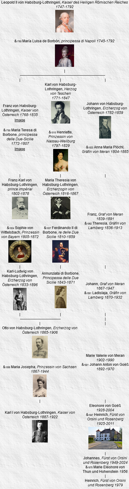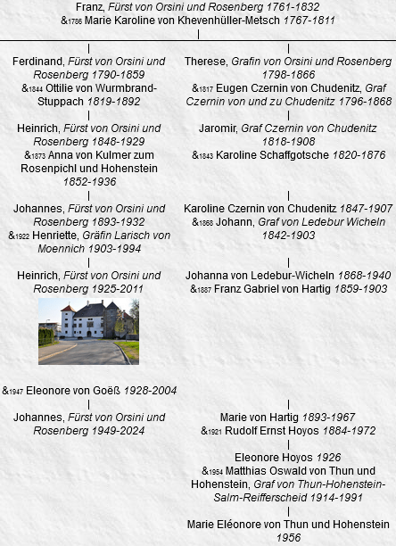 2 Heinrich, Fürst von Orsini und Rosenberg (6e), né le 29 janvier 1925, Welzenegg, décédé le 11 décembre 2011 (à l’âge de 86 ans)