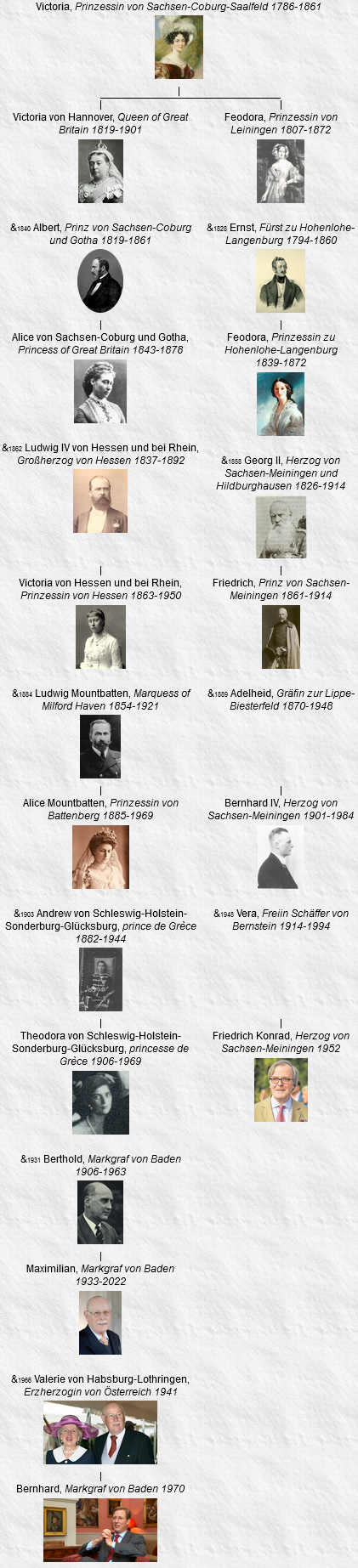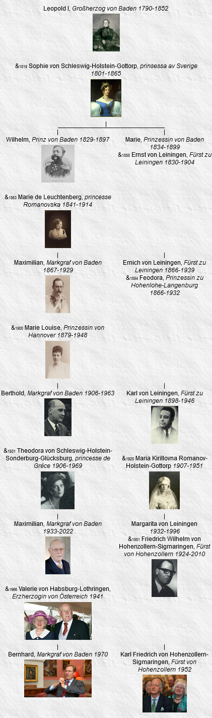 2 Maximilian, Markgraf von Baden, Herzog von Zähringen, Prinz von Baden, né le 3 juillet 1933, Salem (Allemagne), décédé le 29 décembre 2022, Schloss Salem (à l’âge de 89 ans).