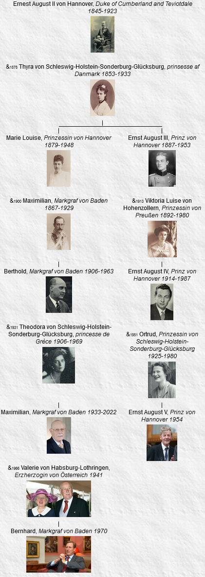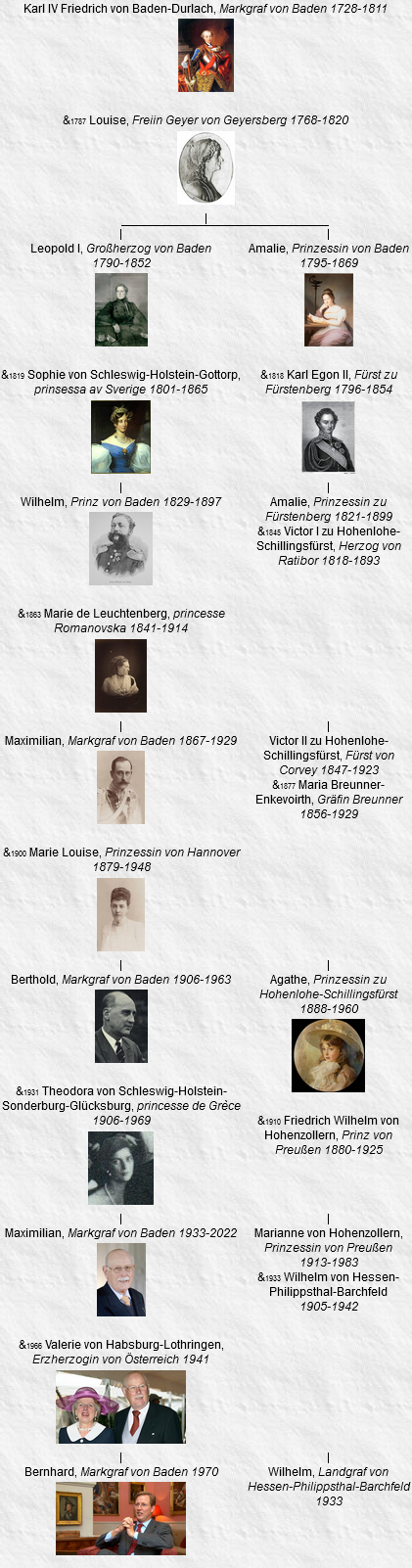 4 Berthold, Markgraf von Baden, Prinz von Baden, né le 24 février 1906, Karlsruhe (Allemagne), décédé le 27 octobre 1963, Spaichingen (Allemagne) (à l’âge de 57 ans).
