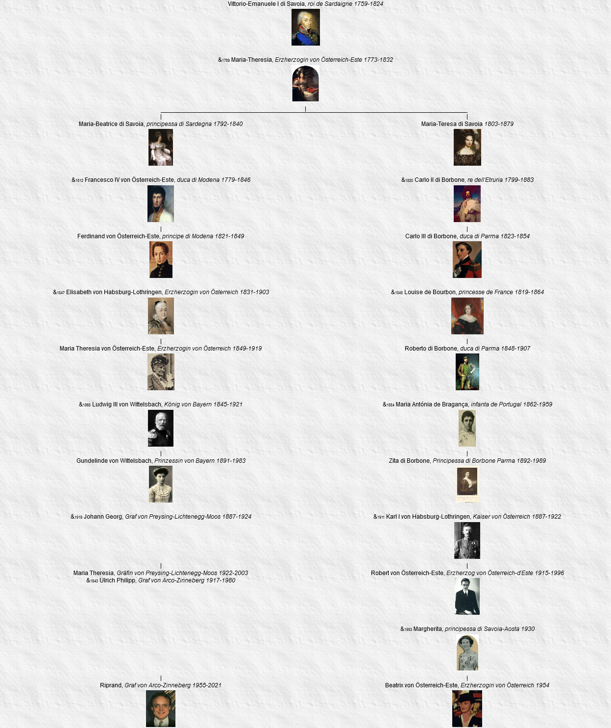6 Ferdinand, principe delle Due Sicilie, duc de Castro, né le 28 mai 1926, Podzamce (Pologne), décédé le 20 mars 2008, Draguignan (Var), incinéré, Naples (Italie) (à l’âge de 81 ans).