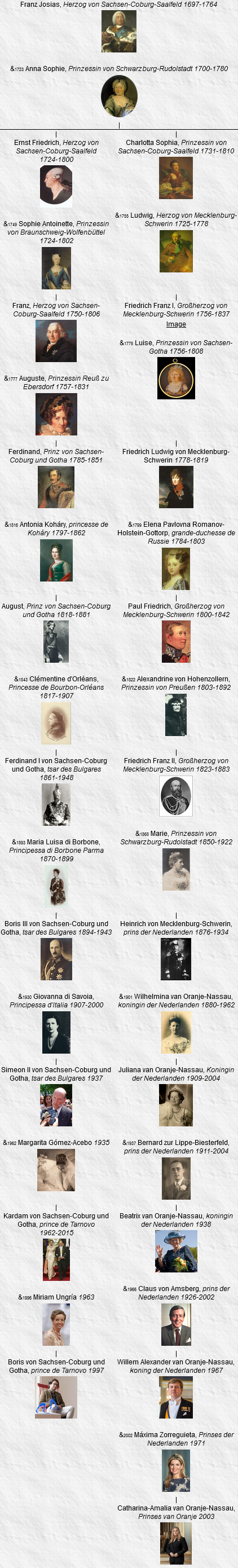 16 Ferdinand, Prinz von Sachsen-Coburg und Gotha, Herzog von Sachsen, né le 28 mars 1785, Coburg (Deutschland), décédé le 27 août 1851, Wien (Österreich) (à l’âge de 66 ans).