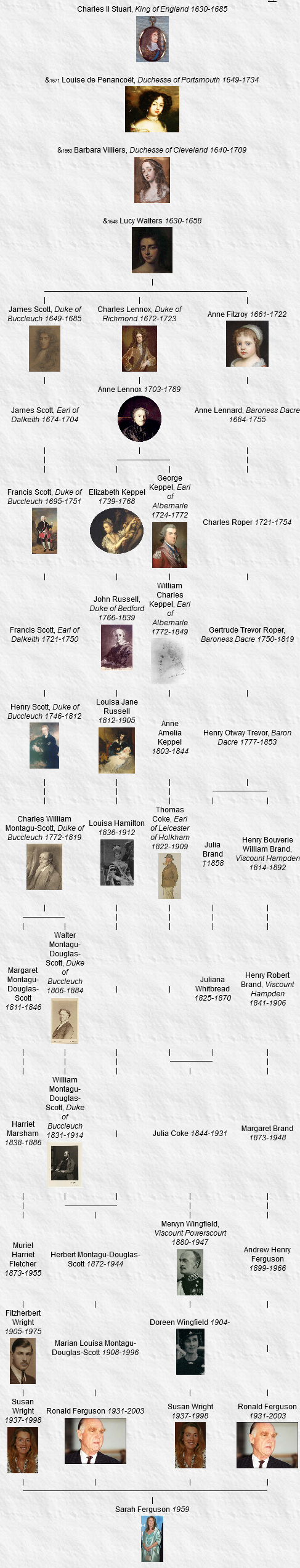 Le Duke descend 5 fois du Roi Charles II par ses 3 bâtards : les ducs de Richmond, Buccleuch et de Saint-Albans