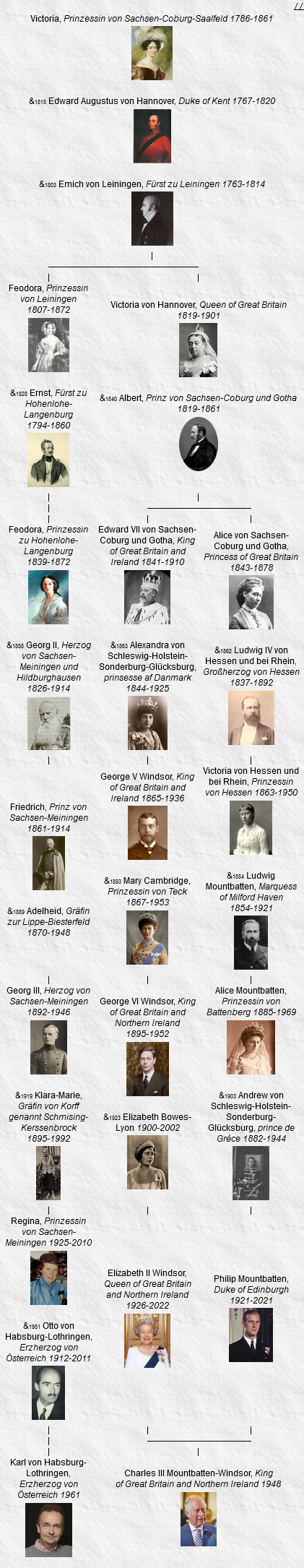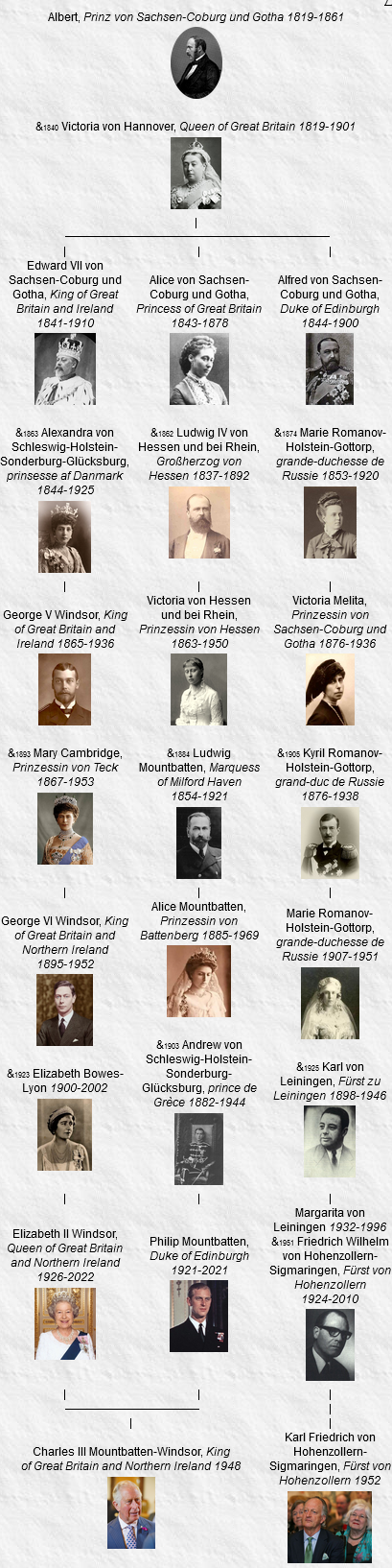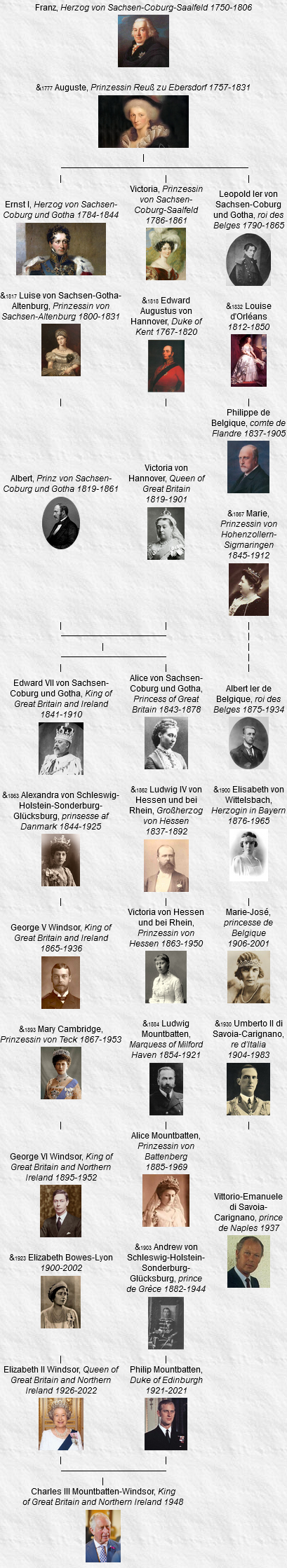 Voici une liste (non exhaustive) des descendants de la souveraine :