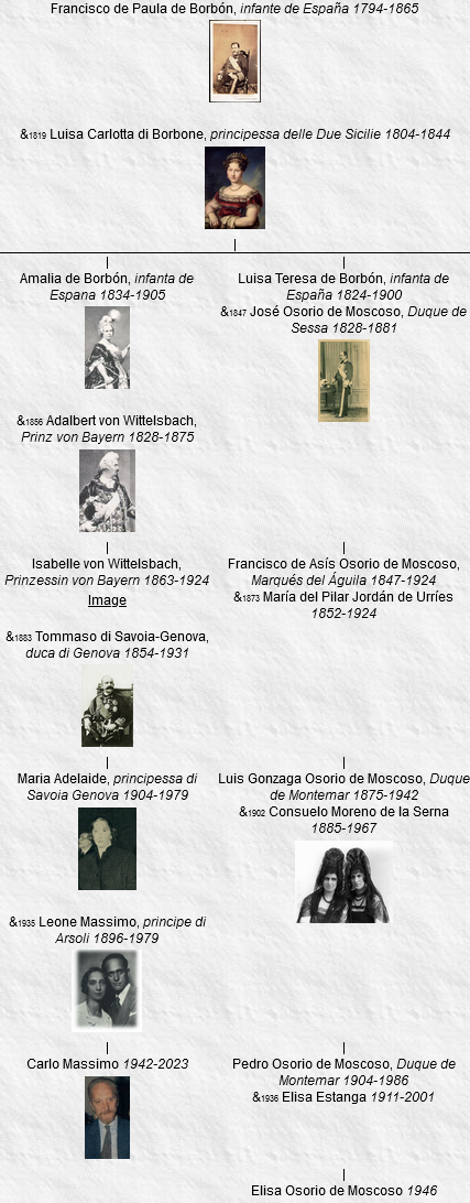 36Luca Bourbon Del Monte Santa Maria, Marchese del Monte Santa Maria, né le 24 août 1808, décédé le 4 février 1885, Firenze (Italia) (à l’âge de 76 ans).