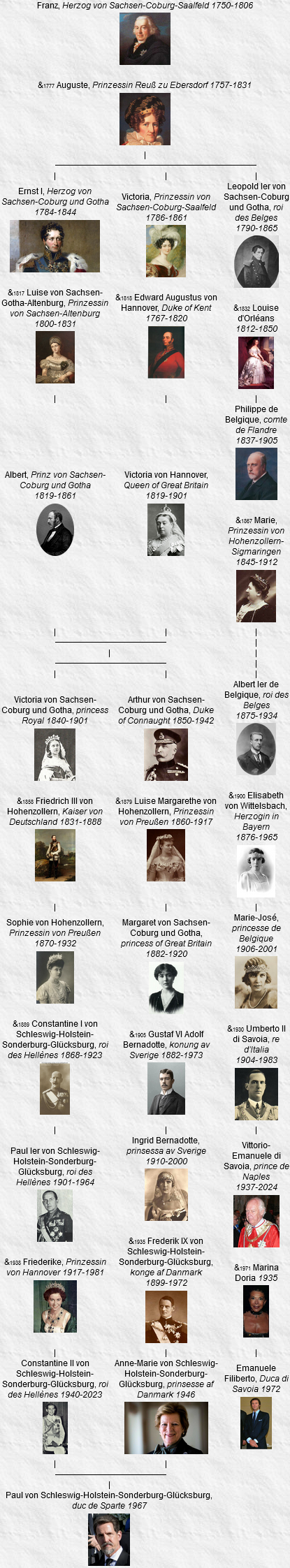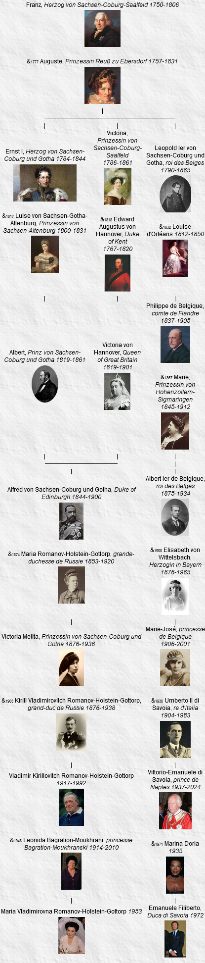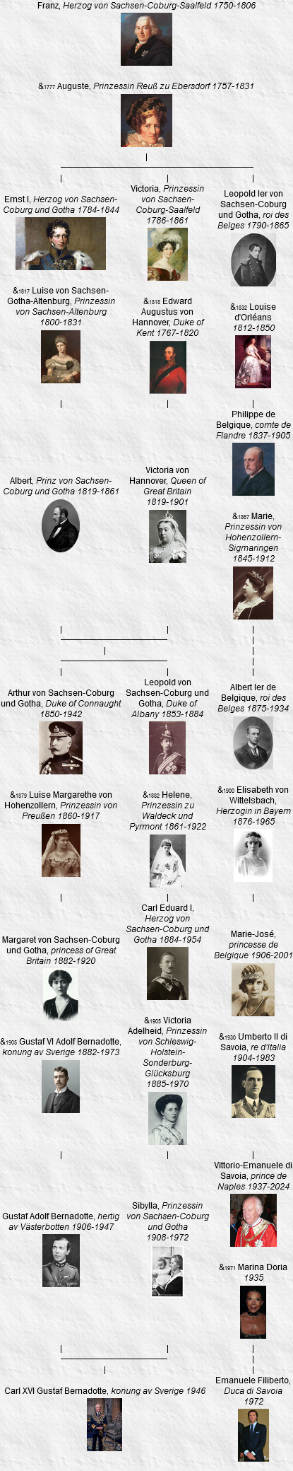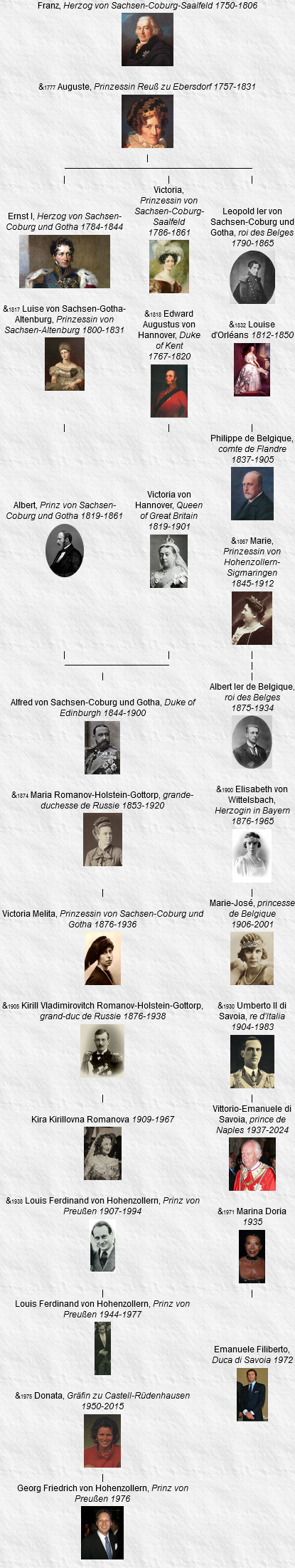 16Ferdinand, Prinz von Sachsen-Coburg und Gotha, Herzog von Sachsen, né le 28 mars 1785, Coburg, décédé le 27 août 1851, Wien (à l’âge de 66 ans).