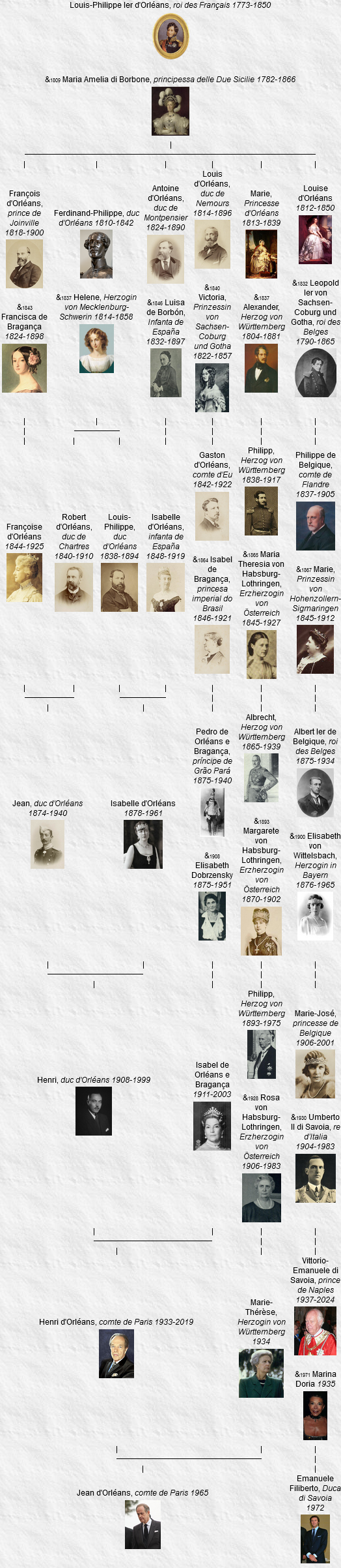 25 Louise d’Orléans, née le 3 avril 1812, Palerme (Sicile), baptisée le 4 avril 1812, chapelle royale, Palermo (Italia), décédée le 11 octobre 1850, Ostende (Belgique), inhumée, église de Laeken (à l’âge de 38 ans).