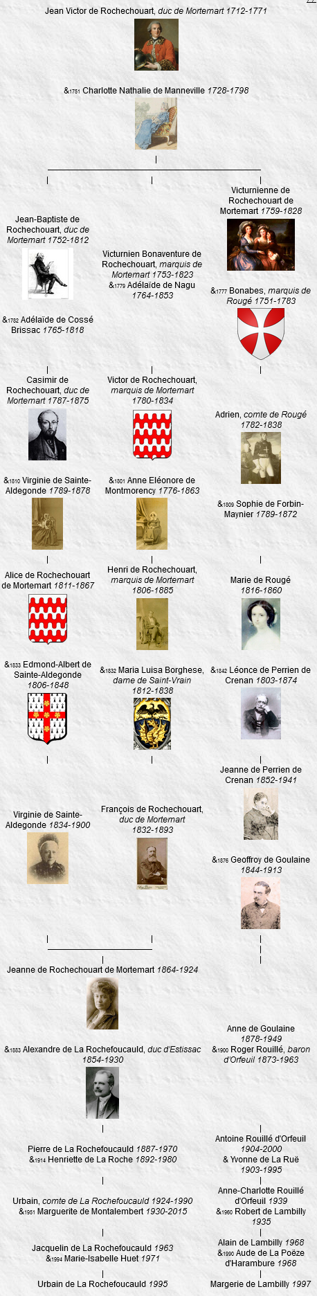 39Alice de Rochechouart de Mortemart, née le 5 avril 1811, Paris, baptisée le 6 avril 1811, Saint-Germain des Prés, Paris, décédée le 24 septembre 1867, château de Saint Vrain, Saint-Vrain (Essonne) (à l’âge de 56 ans).