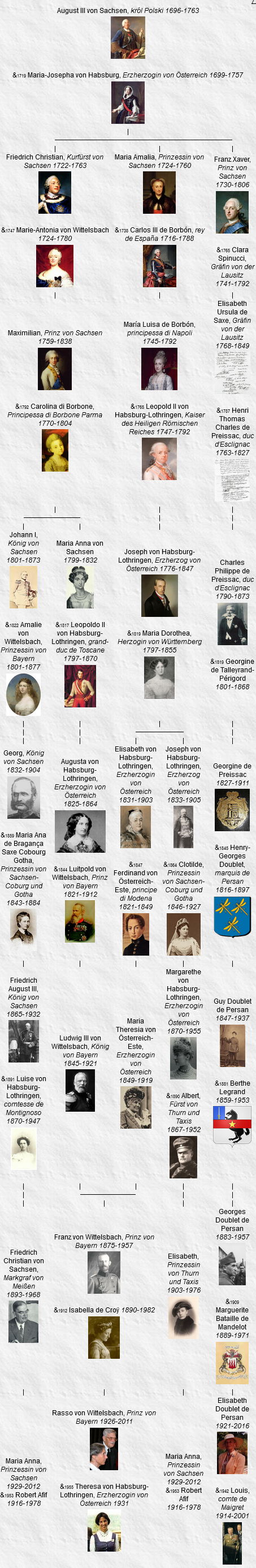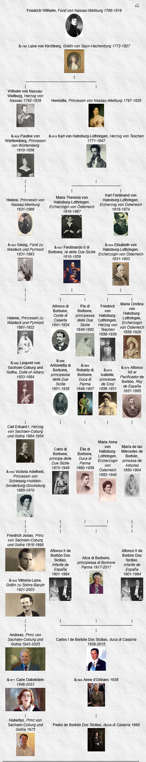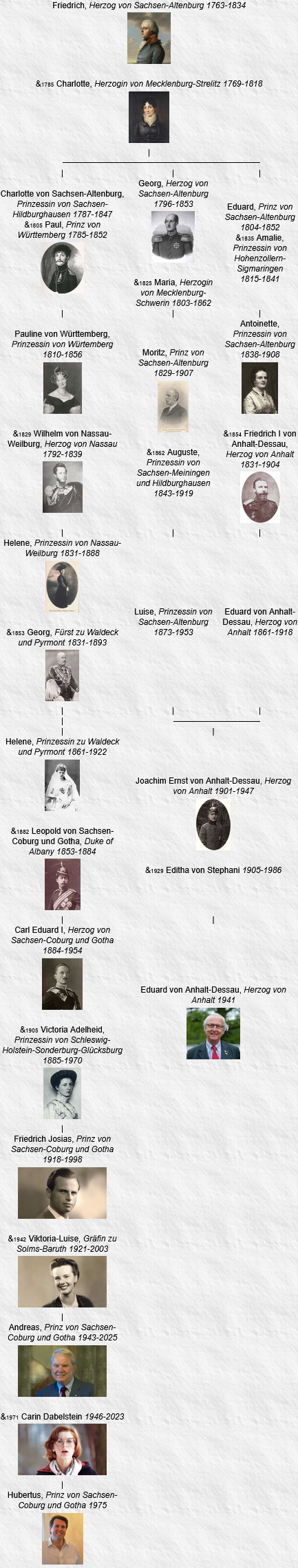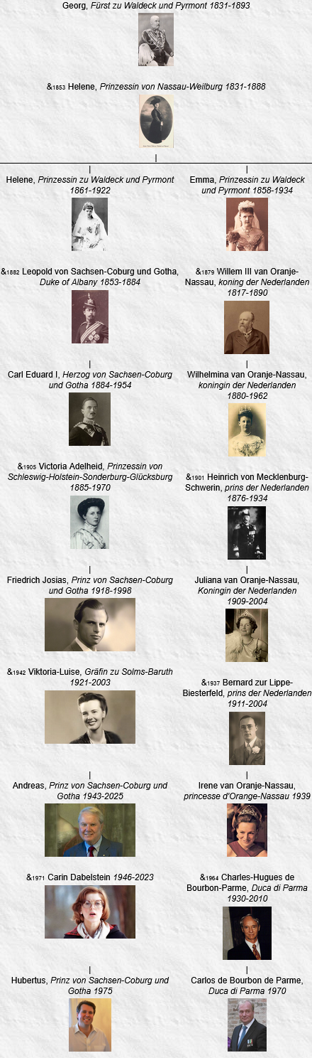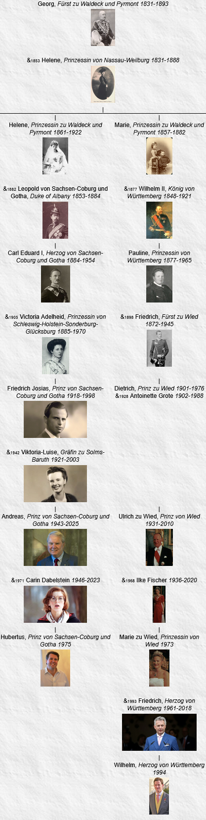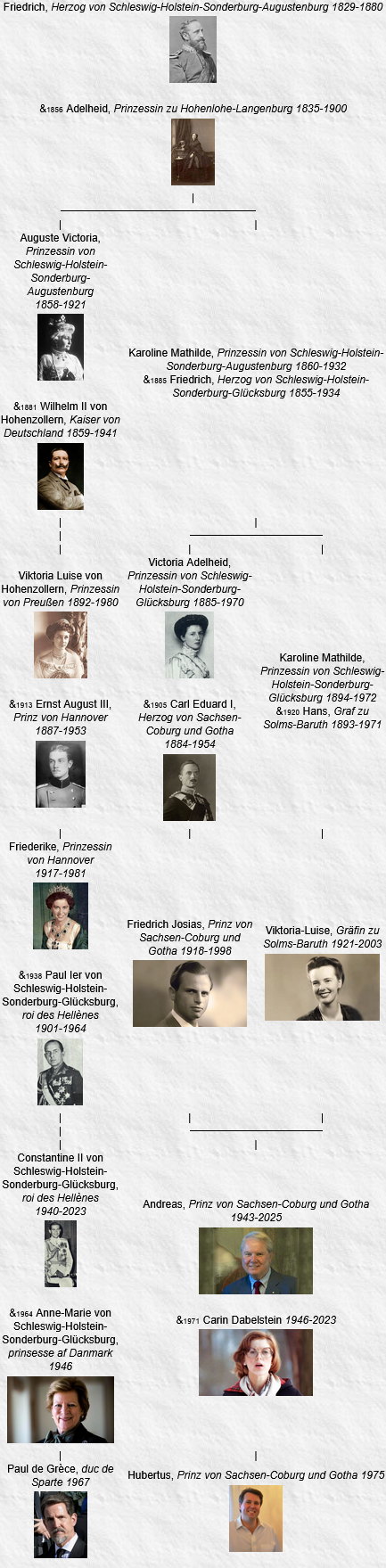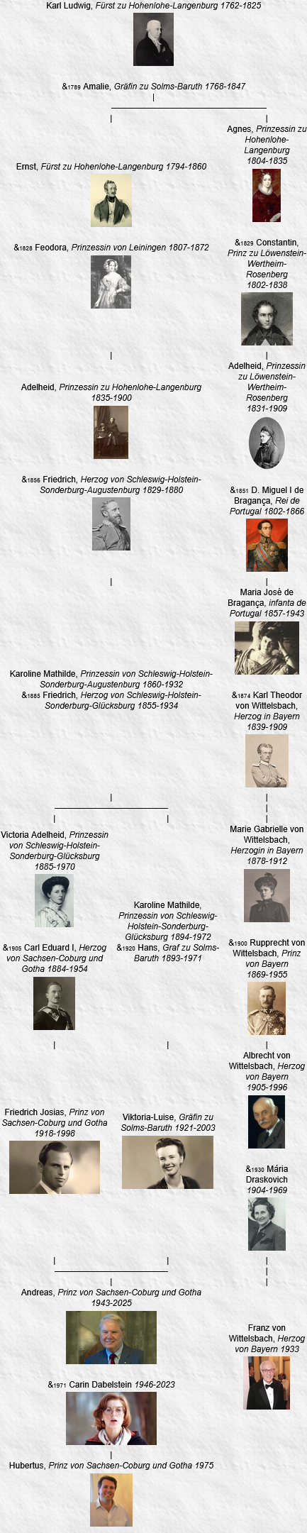 2 Andreas, Prinz von Sachsen-Coburg und Gotha, Herzog zu Sachsen, né le 21 mars 1943, Schloss Casel in der Niederlausitz, décédé le 3 avril 2025, Coburg, Bayern (Deutschland) (à l’âge de 82 ans).