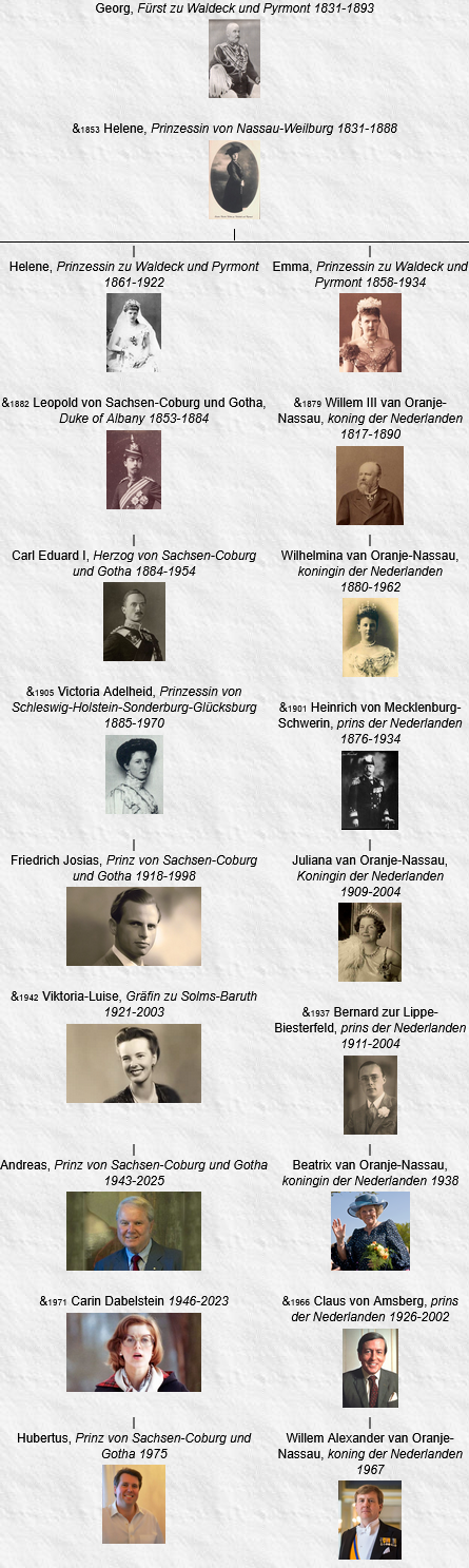 34 Georg, Fürst zu Waldeck und Pyrmont (6e, 15 mai 1845 – 12 mai 1893), né le 14 janvier 1831, Arolsen, Hesse (Allemagne), décédé le 12 mai 1893, Marienbad (à l’âge de 62 ans), major à la suite de l’armée prussienne.