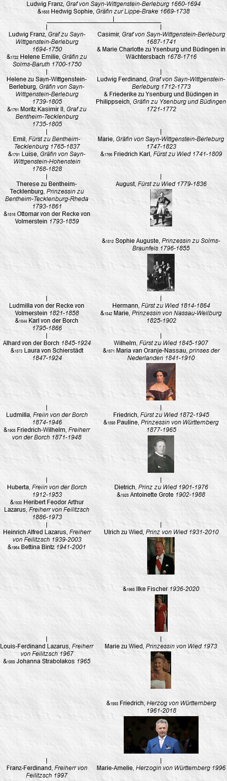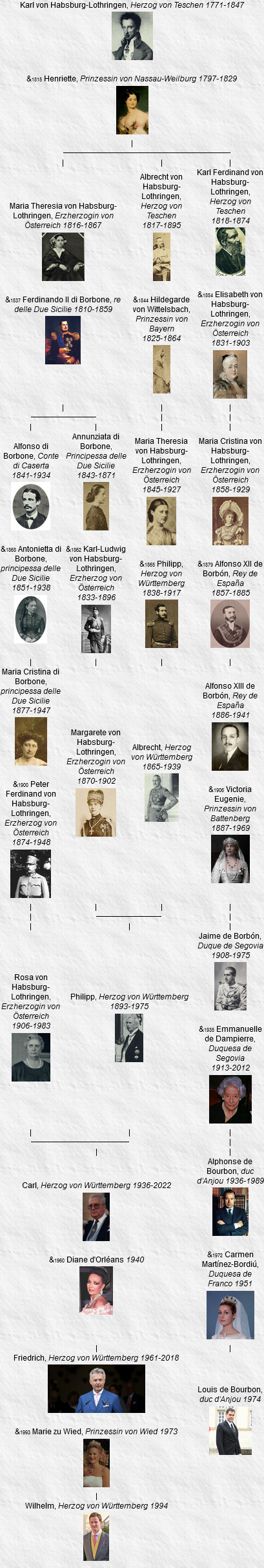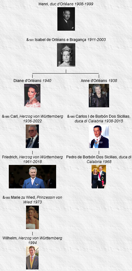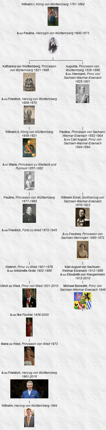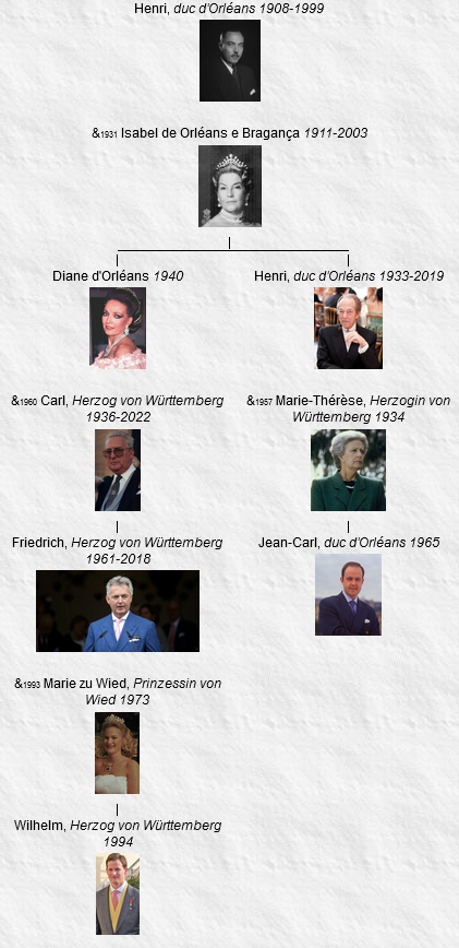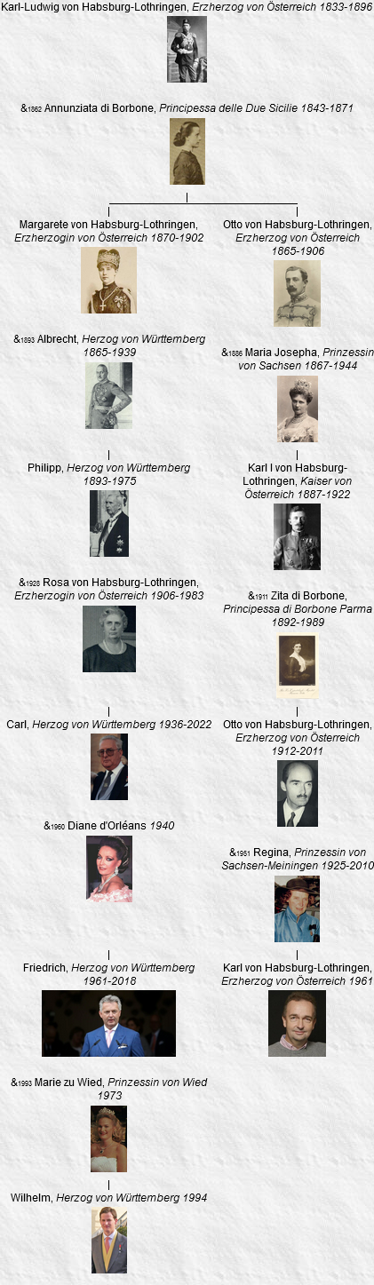 4 Carl, Herzog von Württemberg, né le 1er août 1936, Friedrichshafen (Allemagne), décédé le 7 juin 2022, Ravensburg (à l’âge de 85 ans).