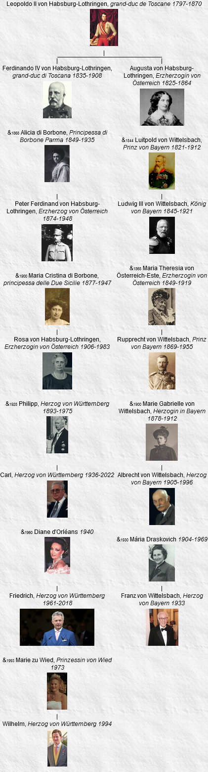 36 Ferdinando IV, Erzherzog von Österreich, grand-duc di Toscana (1859-1860), né le 10 juin 1835, Florence, Italie, décédé le 17 janvier 1908, Salzbourg, Autriche (à l’âge de 72 ans).